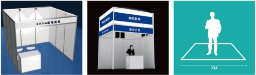 2. 精标展位基本配置:3m×3m展位(包括精装标准展台、布幅广告门楣、地毯、一桌两椅、